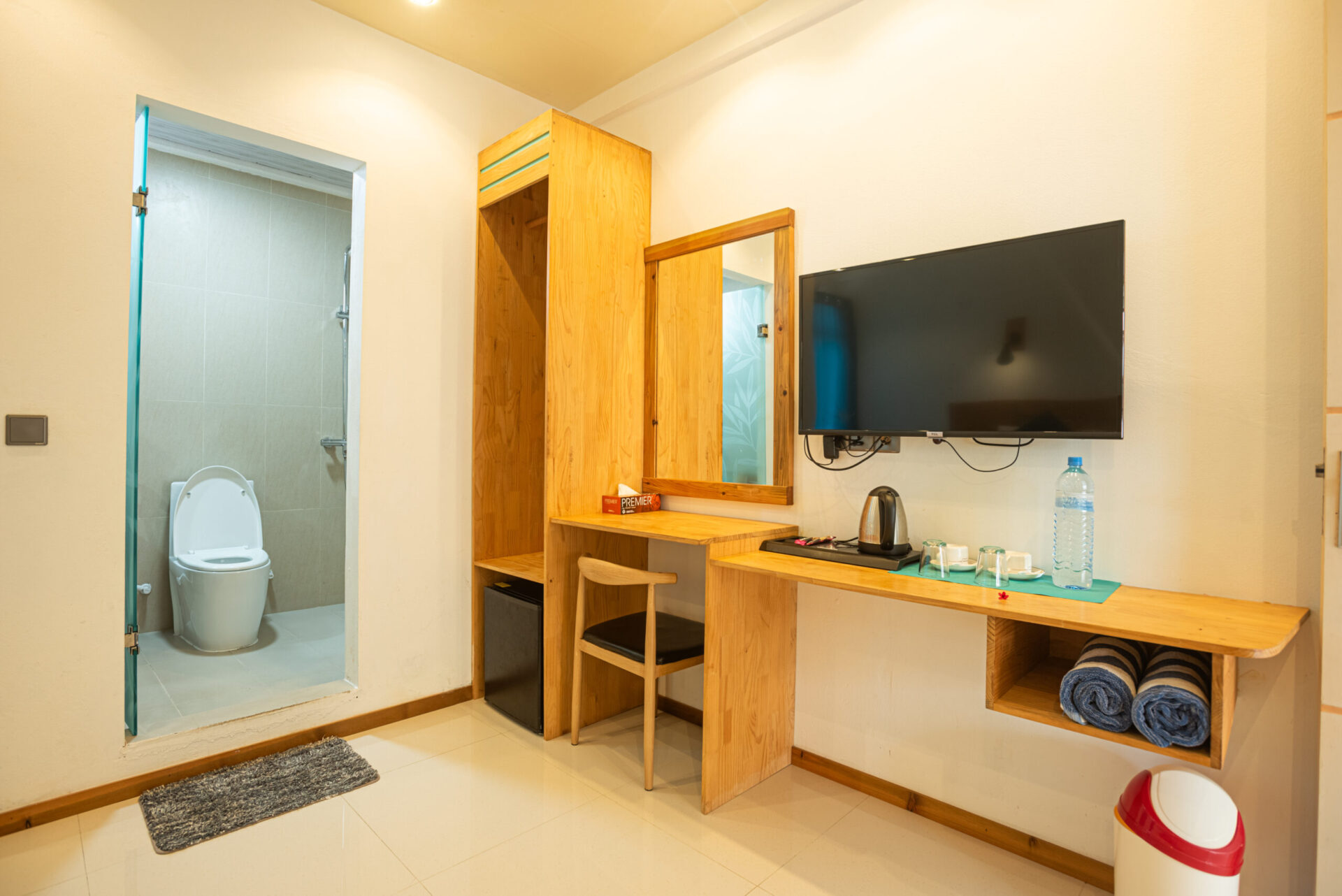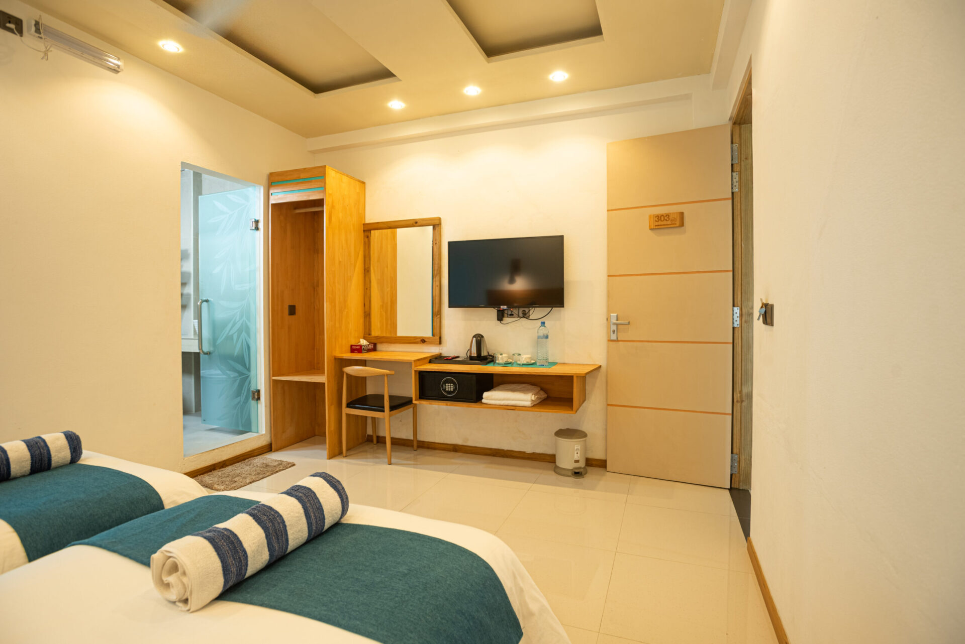 Personal was very nice, helpful and welcoming. For the location it is one of the best accommodation on island Huraa. We felt very much welcomed.Some technical issue with shower in one of the rooms